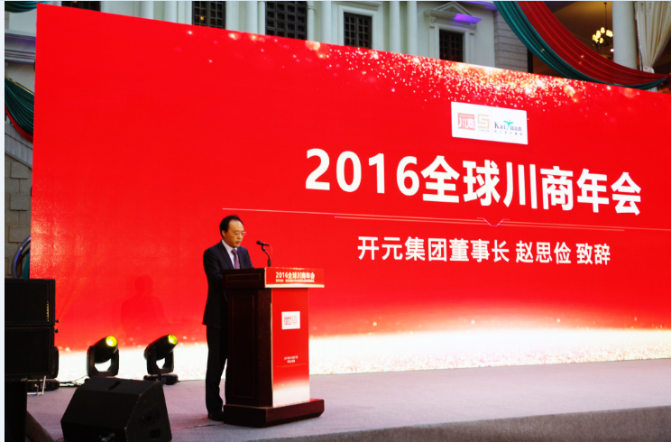 KY开元集团作为此次盛会的独家冠名单位,与出席会议的领导、学者和知名川商一起,共同见证了2016川商荣誉的巅峰时刻,集团赵董事长代表KY开元发表重要讲话。