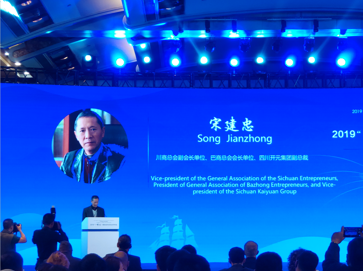 集团副总裁宋建忠代表川商总会副会长、巴商总会会长赵思俭及广大四川商协会组织作主旨演讲。