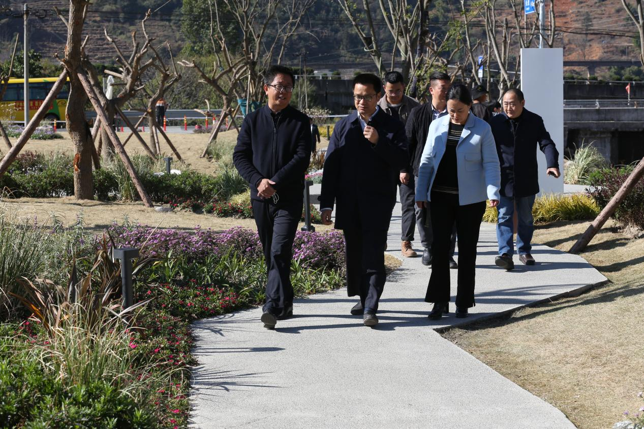 李总陪同万书记参观了公园溪地景观,并就项目的规划设计理念和景观建设的相关情况进行了介绍。
