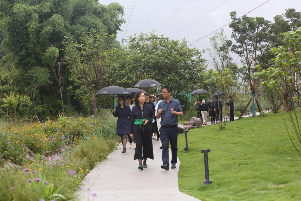 在大地公园景观步道,大家一路前行,欣赏盛开的百花,感受和煦的清风。李总向客人们详细介绍了项目景观的设计理念,花卉苗木的种类和特点等情况。